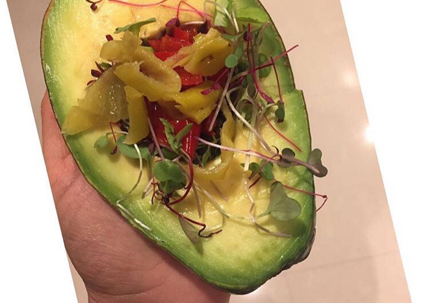 - Corta el aguacate a la mitad y rellenar con lo que gustes