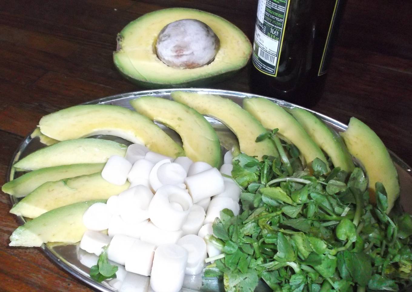 Ingredients and spices that need to be Make ready to make Ensalada de aguacate (palta), palmito y berros: