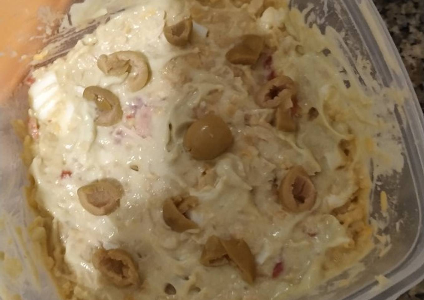 - Añadimos los ingredientes (pimiento, aceitunas... bonito, huevo u otros ingredientes que prefiramos) y añadimos la mahonesa