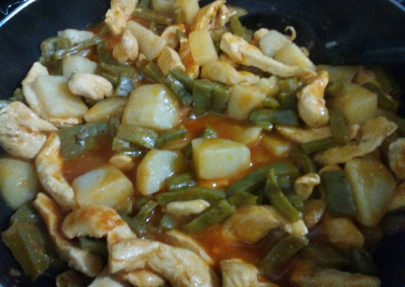 - En una cacerola de preferencia antiadherente con poco aceite colocamos las fajitas, salamos, las dejamos que sellen y después agregamos los nopales y papas ya escurridos, el puré de tomate y tapamos dejamos cocer, que suelte el hervor por unos 10 minutos y listo a comer.