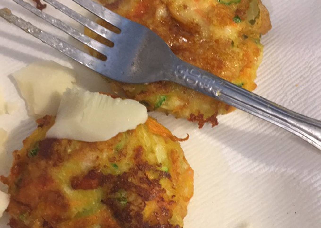 - Primero ralle la zanahoria calabacín y agregue un poquito de harina y dos huevos y le agregue una pizca de sal agregue queso rallado