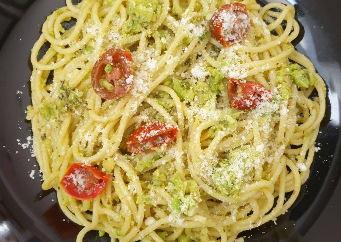 - Añadir los espaguetis y dejarlos unos minutos removiendo de vez en cuando para que se vaya mezclando el aguacate y se calienten