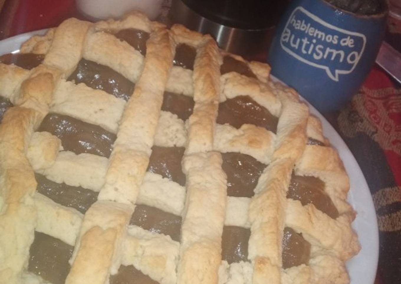 - Después de un tiempo colocamos la masa en la tartera.más él dulce y las tiras