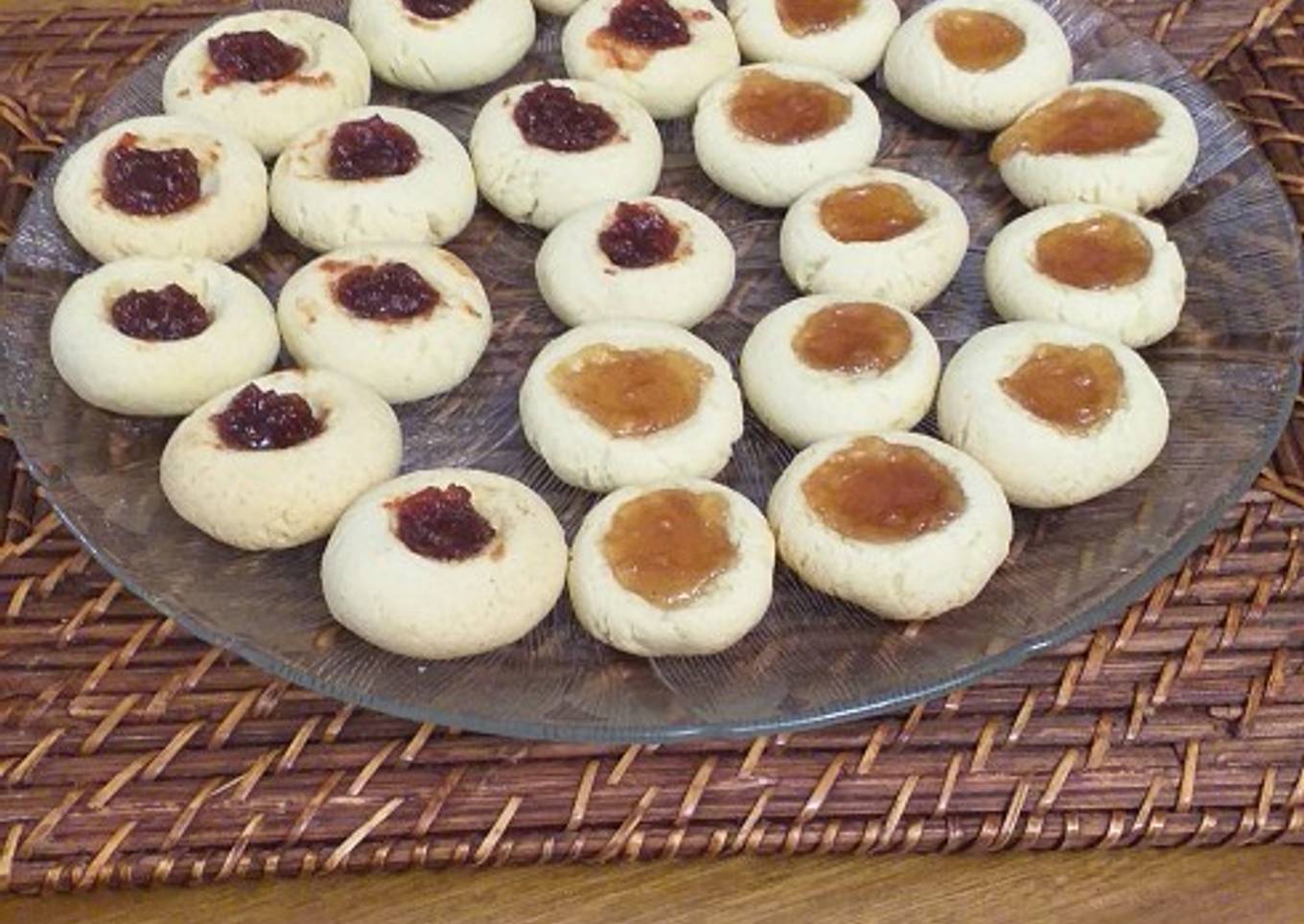 - Enmantecar una fuente para horno. Hacer cilindros con la masa, cortar rodajas de un centímetro de espesor y hacer un hueco en cada una para poner el dulce. Como la masa es muy quebradiza yo hago bolitas y con el pulgar le hago un hueco, y de esta forma me resulta más fácil y quedan perfectas. Recordar colocar separadas en la fuente (ver foto) porque aumentan el tamaño durante la cocción. La masa alcanza para 28 pepas.