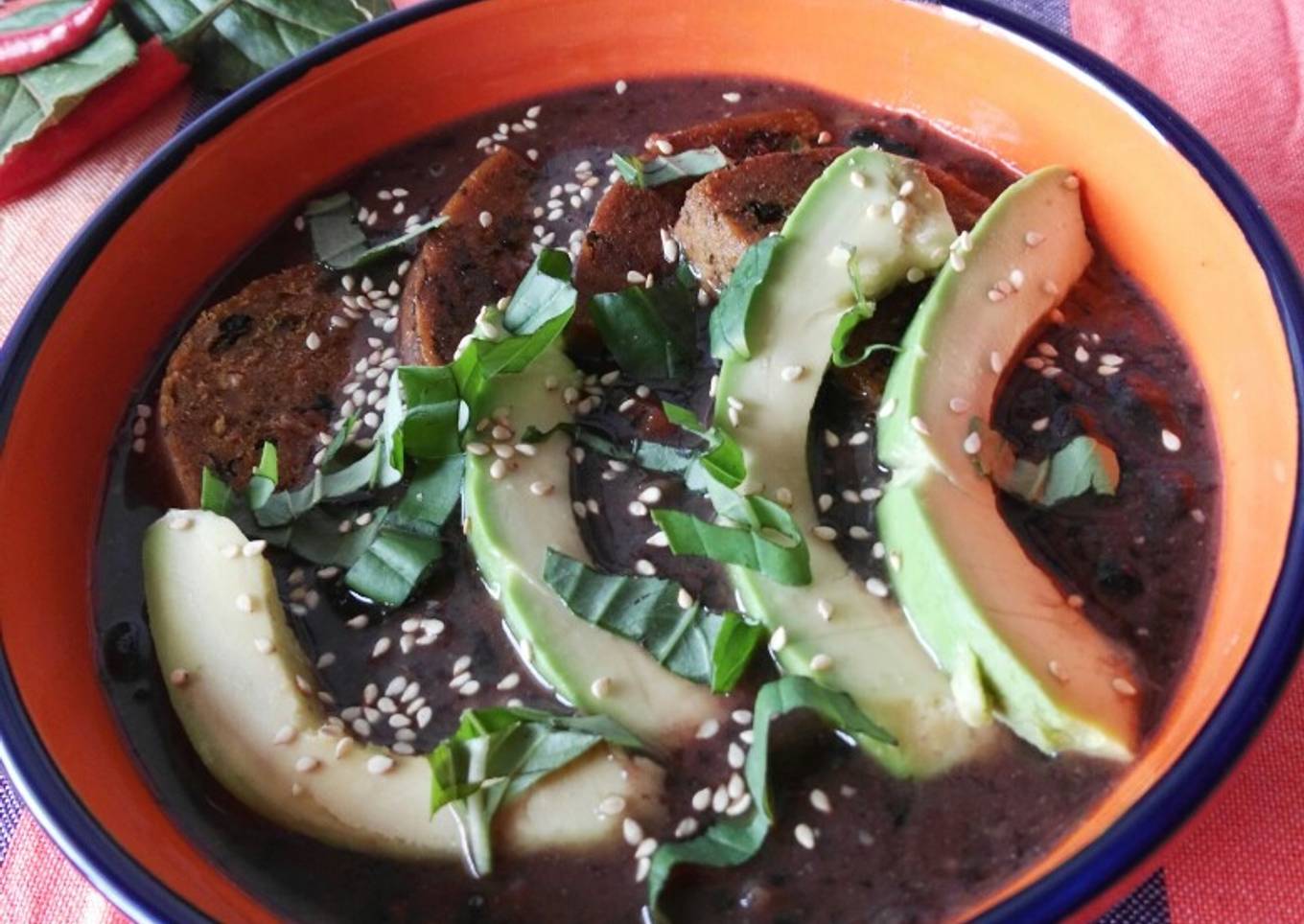Sopa de alubias negras con tofu y aguacate