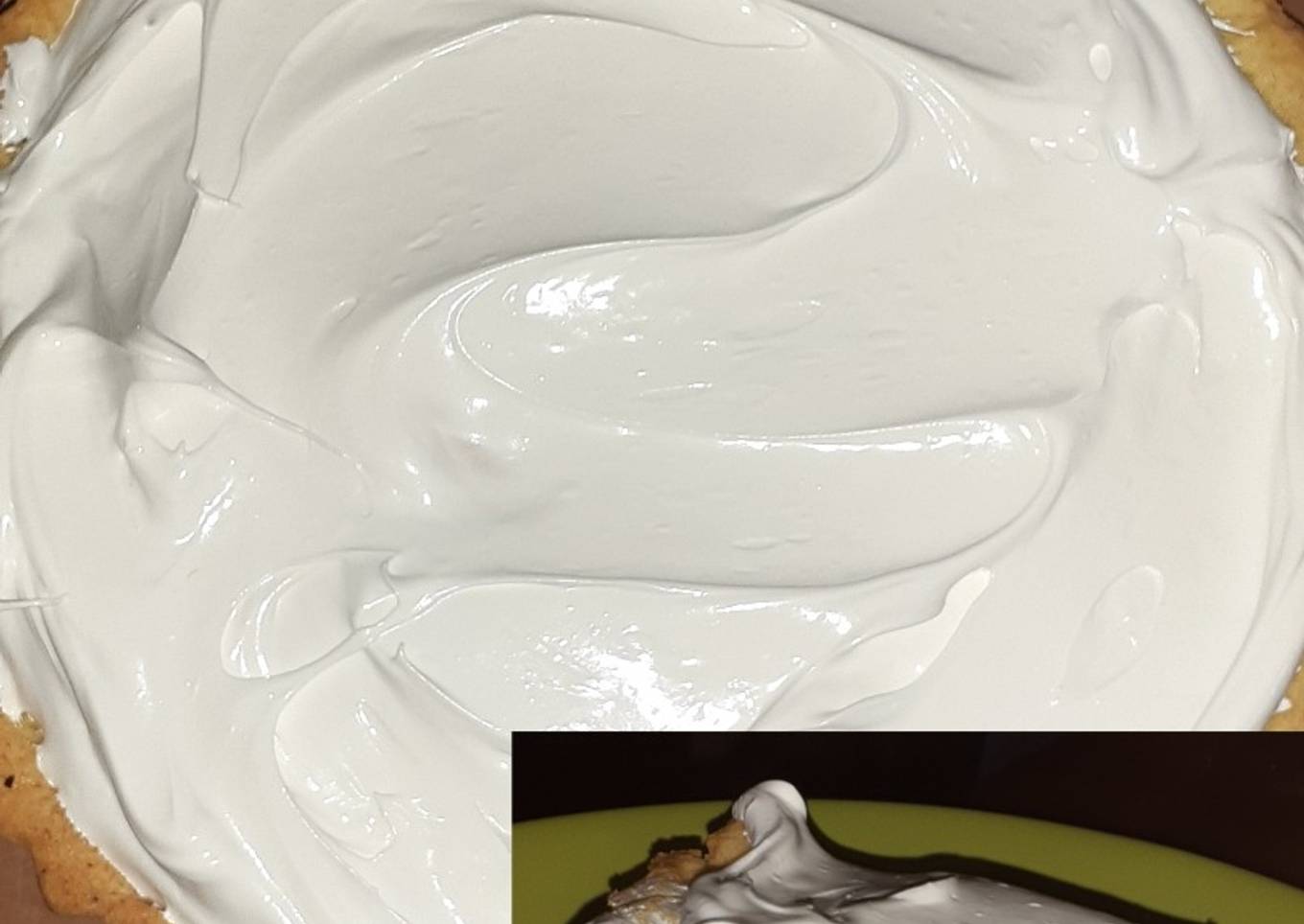 - Luego solo pon el relleno en la base, y colocale el merengue arriba. Recomendación: dejar que enfríe lo suficiente la tarta antes de comer, ya que el merengue estará algo caliente. Y listo! Espero que la disfruten tanto como yo 😊💞