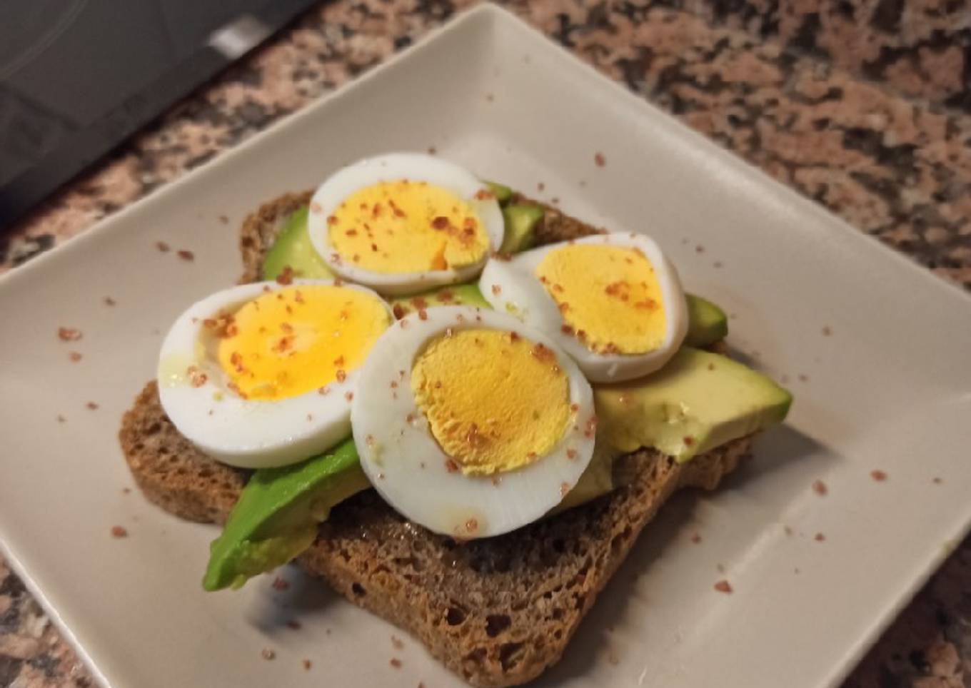 Tosta de pan integral con huevo y aguacate