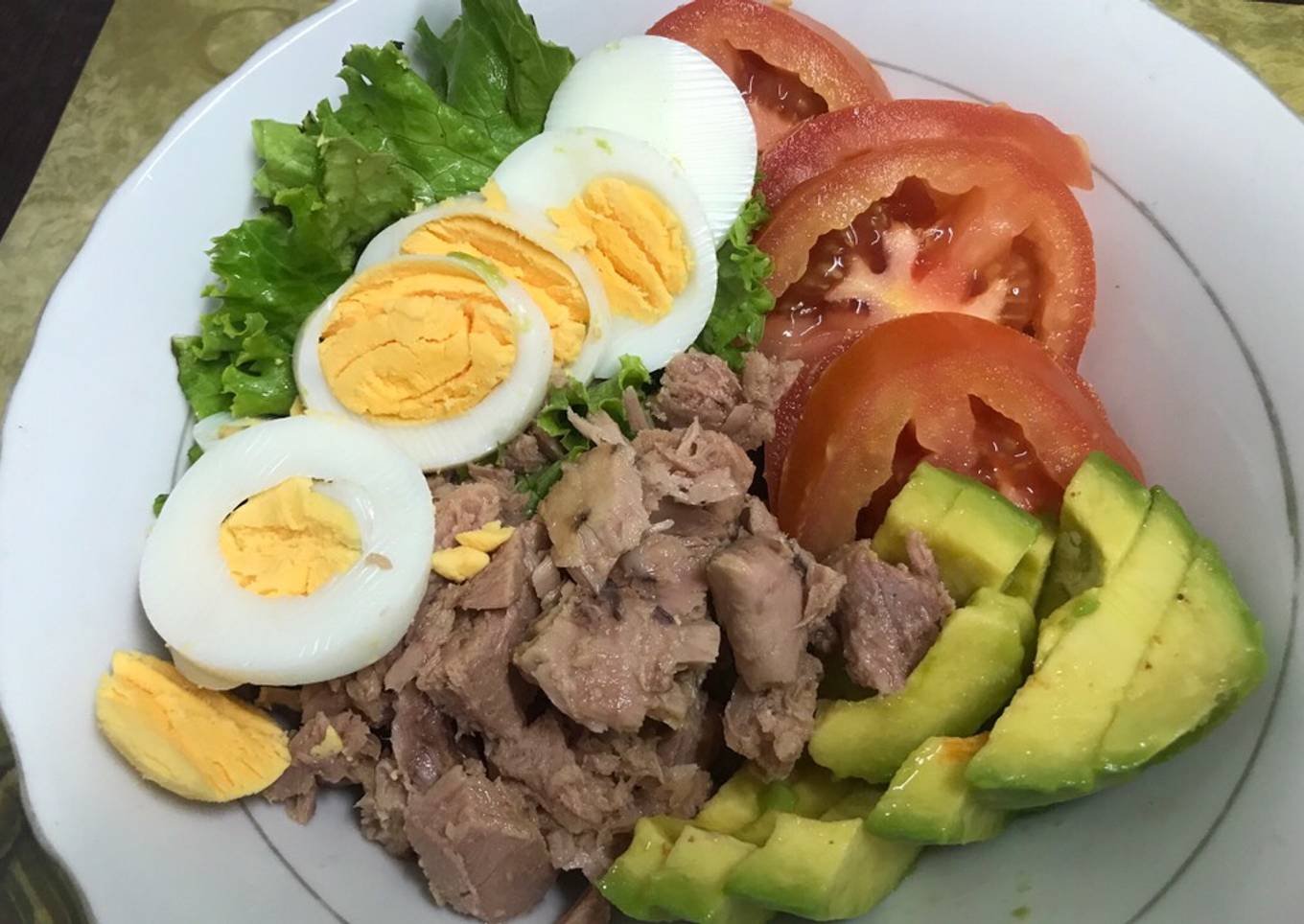 Ensalada de atún, aguacate y huevo