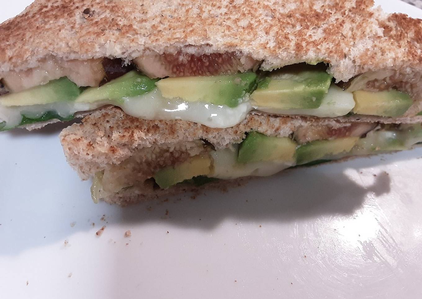 Sándwich de aguacate, queso brie y higos