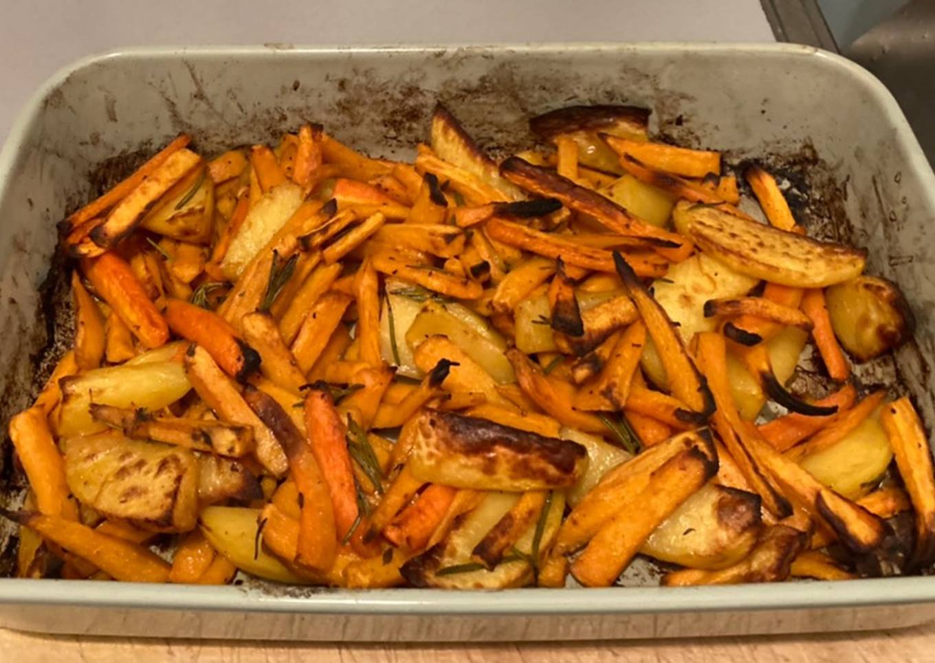 - Hornear haciendo uso del ventilador a 200 grados durante aproximadamente 45 minutos hasta que la verdura esté a punto y tome el tostado deseado.